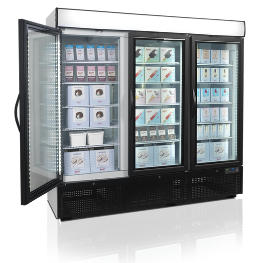 TefcoldTefcold display fryser 3 dører NF7500G Varenummer 31551 Vis fryser Automatisk avriming Selvlukkende glassdør med varmekabel Lysstopp med LED-lys ...
