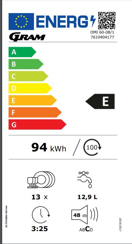 GramGram helintegrert oppvaskmaskin 60 cm OMI 60-08/1 Fullt integrerbar oppvaskmaskin. 13 kuverter. Energiklasse E Kapasitet 13 kuverter Lydnivå...